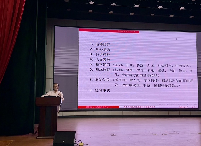 为强化学生生涯规划意识,提升学科交叉融合视野,助力复合型人才培养,4月17日,永利23411集团在横江校区教学楼多功能厅举办"为不可预见的未来做好可预知的准备"主题讲座。浙江理工大学二级教授裘松良受邀担任主讲嘉宾,院长胡建伟、党总支副书记(主持工作)刘双四出席活动,200余名师生到场聆听。