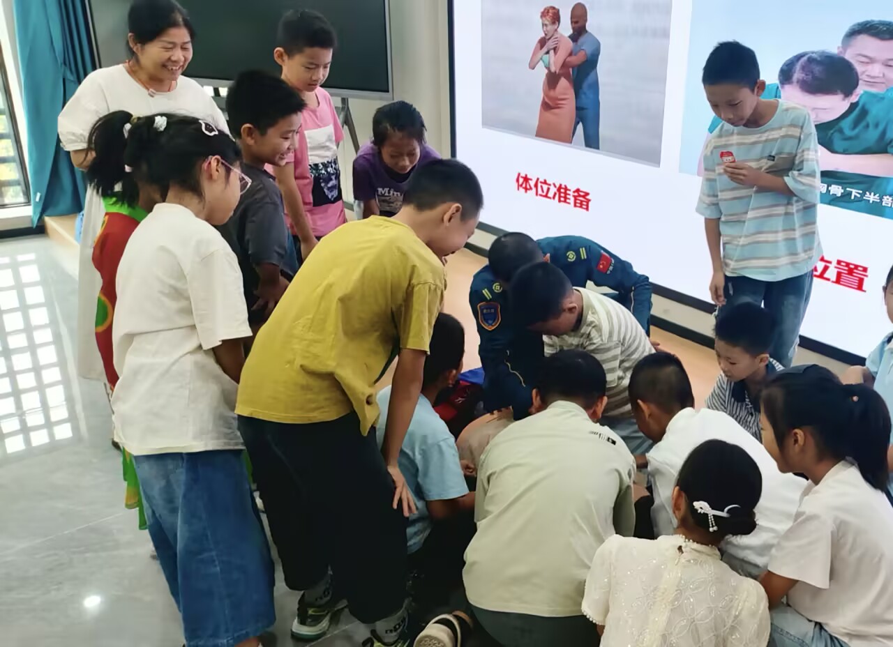 活动现场,蓝天救援队专业教官通过理论讲解与实操演练相结合的方式,重点教授了心肺复苏和海姆立克急救法等应急救护技能。教官们采用模拟教学设备,手把手指导孩子们进行实际操作,让孩子们在亲身实践中掌握急救要领。孩子们认真聆听,积极互动,在专业指导下进行演练,现场学习氛围浓厚。