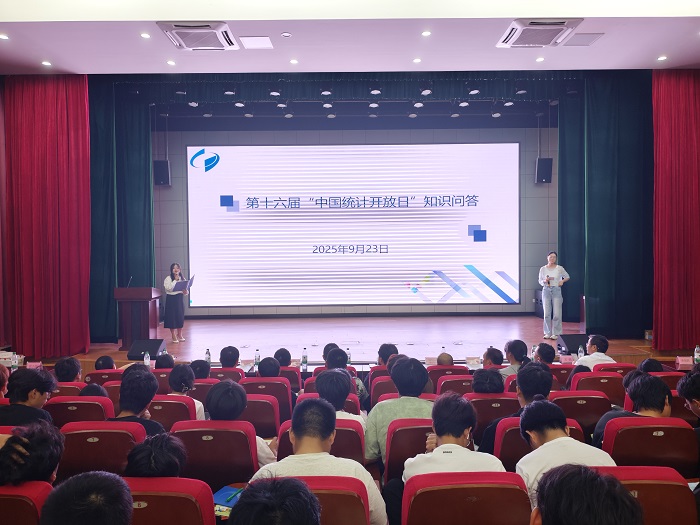 随后,在横江校区报告厅内进行有奖知识竞答。竞答题目涵盖统计基础知识、统计法条例以及民生调查、农业普查等内容,融知识性与趣味性于一体。来自应用统计学、经济统计学专业的学生们踊跃参与、争相抢答,现场掌声与欢呼声不断。在轻松愉快的氛围中,抽象的统计概念转化为生动的知识体验,专业壁垒被趣味互动悄然打破,同学们不仅巩固了专业知识,更深刻感受到了统计学的魅力与价值。