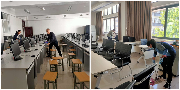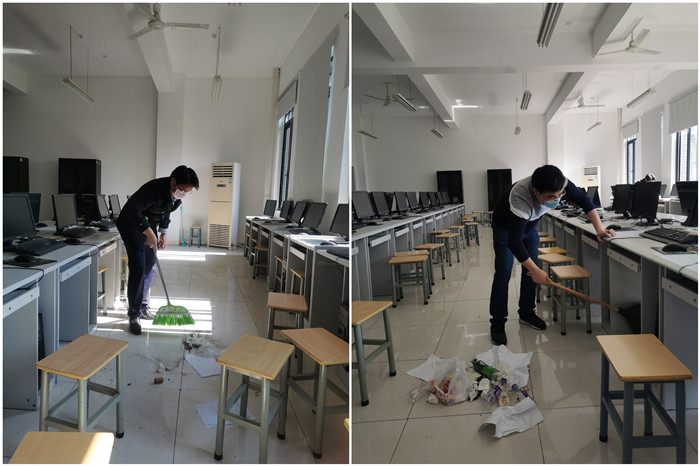 在清洁过程中,教师党员充分发扬不怕苦、不怕累、不怕脏的精神,对学院实训室、专业教室、公共办公及活动场所等进行彻底的卫生保洁,为学生返校创造一个整洁卫生、安全放心的学习环境。