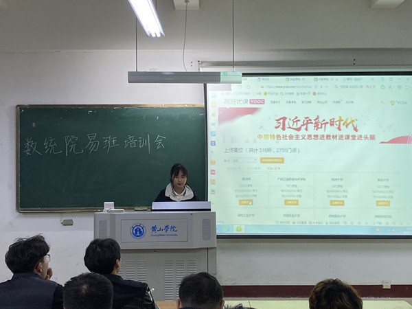 11月13日晚,永利23411集团于横江校区1419教室开展易班培训会,特邀请了易班工作站主席纪张婧月作为本次活动的主讲人。数统学院19、20级各班负责人参加了此次培训活动。