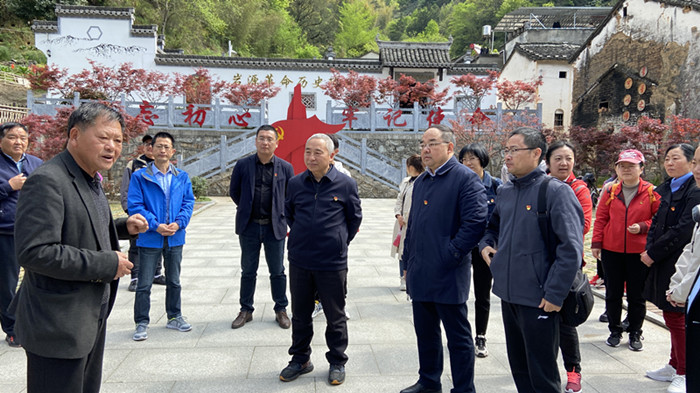 在歙县上丰岩源革命历史陈列馆,大家认真倾听当地老支书的介绍,在一张张照片、一件件物品前驻足观看,回顾难忘的红色历史。据相关史料记载, 早在1942年原中共泾旌太中心县委就在此成立了道溪中心支部,开展革命活动,传播革命真理,并于同年5月成立了歙县西北游击队。岩源人民当时积极参加革命队伍,英勇开展武装斗争,为当地解放事业作出了重要贡献。在抗日战争和解放战争期间,是皖南山区中心县委领导下的革命根据地。在党的领导下,岩源人民与游击队同生死,共患难,同敌人浴血奋战到全国解放,为革命做出了极大的贡献。歙县人民政府于1979年正式确定岩源村为革命老区根据地。
