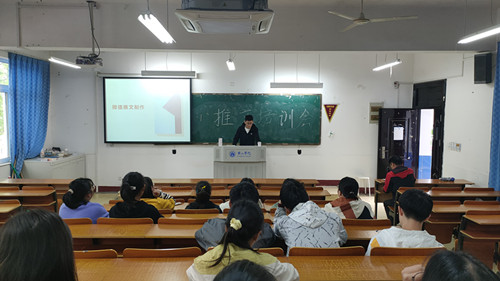 4月14日下午两点,永利23411集团在横江校区教学楼1201教室开展了关于微信推文编辑培训,本次活动特邀数统学院学生会新宣部部长张鹏柱主讲。