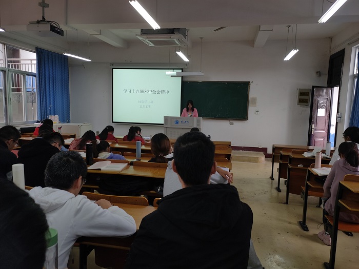 各班团支部书记向班级同学详细介绍十九届六中全会习近平总书记的重要讲话精神,并集中观看、学习了《十九大以来中国共产党大事记》、《中共中央关于党的百年奋斗重大成就和历史经验的决议》等内容。会后,同学们积极交流讨论,19数学与应用二班周亚军说道:“我们要认真学习十九届六中全会精神,牢记习近平总书记的教诲,积极在大学生活中锤炼自己,积极学习知识、增长本领,为实现中华民族伟大复兴贡献青春、智慧和力量。”