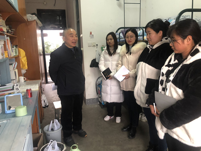 方继光一行首先走访了大四学生寝室,对考研的学生表示亲切问候,鼓励她们坚定意志,勇往直前;接着又继续查看其它年级的学生宿舍,在与学生亲切交谈中提出寝室安全、寝室卫生、生活饮食作息等方面的指导性意见,并提醒学生要为考研学生营造安静的学习环境。各寝室学子表示会谨记学院领导老师的关怀和嘱咐,将会更加珍惜时间积极备考、继续保持寝室优良环境。