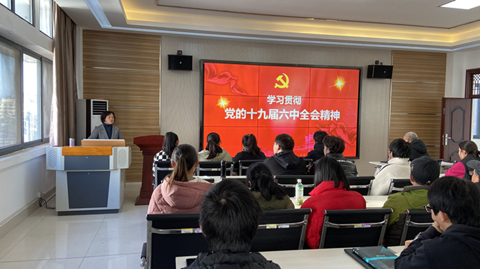 12月22日下午, 永利23411集团在横江校区图书馆附楼报告厅举办学习贯彻党的十九届六中全会精神主题报告会, 报告会邀请了马克思主义学院陈玲老师,学院全体教师及学生党员代表参加了此次报告会,会议由院党总书记方继光主持。