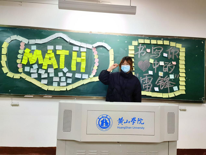 本次活动主要以弘扬雷锋精神,传承中华文明为主题,在提高我院学生对雷锋精神的认识和感悟的同时,也增强了同学们共同抗击疫情的决心和勇气。活动开始,同学们首先对近一个月形式多样的雷锋精神活动进行总结。随后,同学们以“三行情书”的形式在便利贴上写下各自的心得体会。最后,在共同抗击疫情的大背景下,同学们将各自的便利贴张贴在黑板上,并且以“口罩”的形状呈现。同时,结合专业特色,在“口罩”内部用便利贴组合成数学英文字母“MATH”,旨在表现我院学生在抗击疫情期间共同努力的决心和勇气。“口罩”与“MATH”的结合不仅体现了我院的人文特色,更符合在抗击疫情的时代背景下要做好个人防护工作的主流号召。