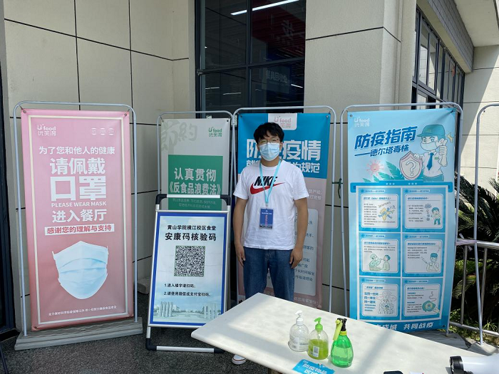 连日来,专职辅导员张志鹏坚守横江校区食堂值班岗位,提醒学生戴口罩、保持一米间隔有序排队就餐,倡导学生将饭菜打包带走,防止人员聚集可能带来的安全隐患,认真贯彻落实疫情防控期间学生食堂就餐相关要求。