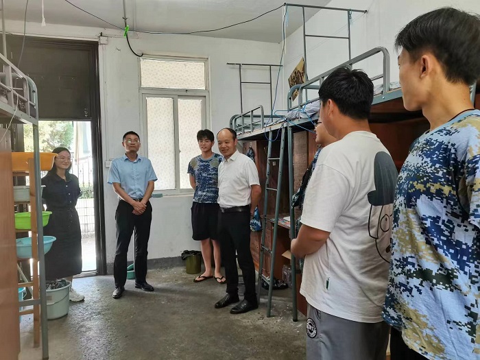 为深入了解2022级新生入住情况,引导新生更好地适应大学生活,9月16日下午永利23411集团党总支副书记张爱民、党总支副书记胡建伟及2022级新生辅导员深入新生宿舍,走访看望2022级新生。