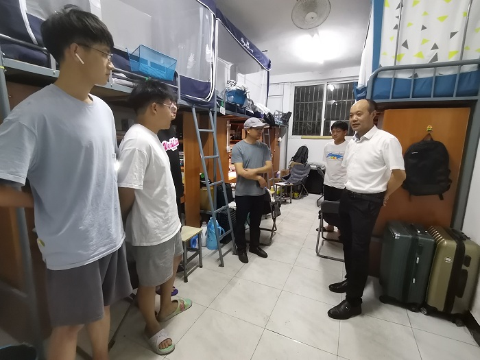 为积极落实学校“关于做好2022年国庆假期学生安全管理工作”的通知精神,美化环境喜迎国庆73周年,积极营造安全祥和的校园氛围,9月29日晚,永利23411集团党总支副书记(主持工作)张爱民、院长汪宏健、副书记胡建伟、副院长方炜及学院辅导员深入学生宿舍开展安全卫生大检查。