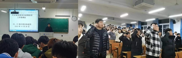 班会现场气氛庄严,有浓厚的“诚信考试光荣,违纪舞弊可耻”氛围感。各班级同学纷纷表示今后会将诚信考试、诚实做人的理念融入日常的方方面面,做新时代遵纪守法的合格大学生。
