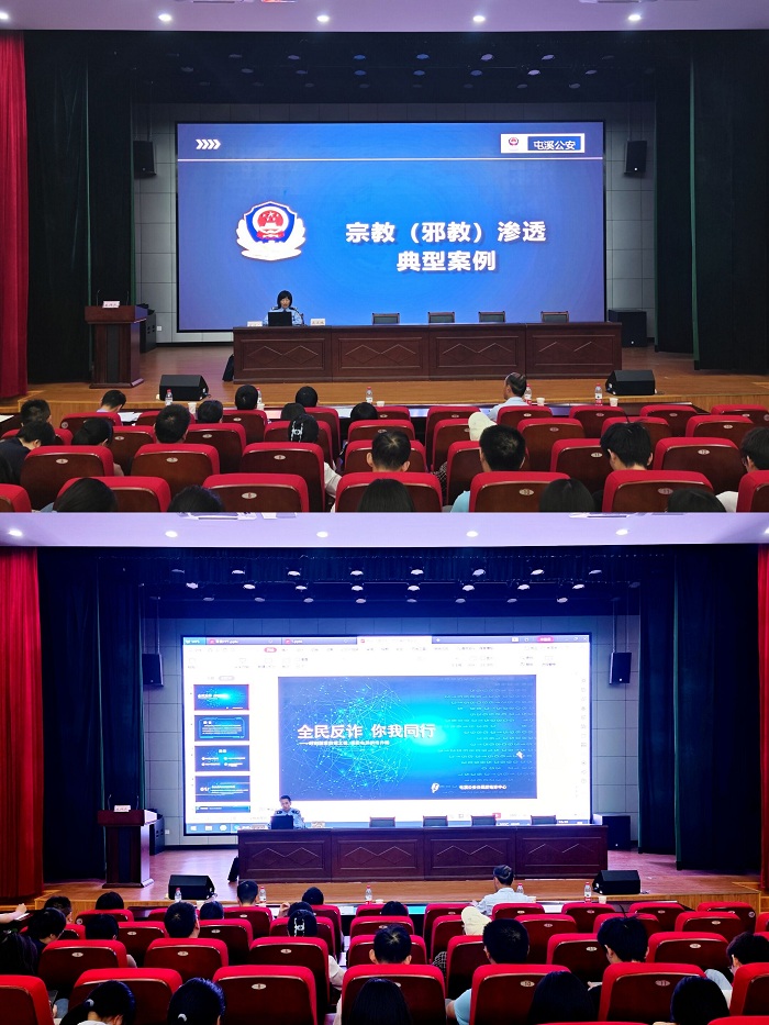 屯溪公安分局四位警官分别从意识形态安全观、如何反对和抵制邪教、防范电信网络诈骗、珍爱生命,拒绝毒品、大学校园安全等方面做了全面深入的知识分享和警示宣讲。我院广大师生进一步了解到“两个不得、五个严禁”的深刻内涵,电信网络诈骗的常见手段、毒品的危害性以及校园人身安全、财产安全的典型案例与防范措施。四位警官的讲座内容丰富详实、专业性强,贴近实际,广大师生纷纷表示宣讲内容真实贴切、入耳入心、重在预防、受益匪浅。
