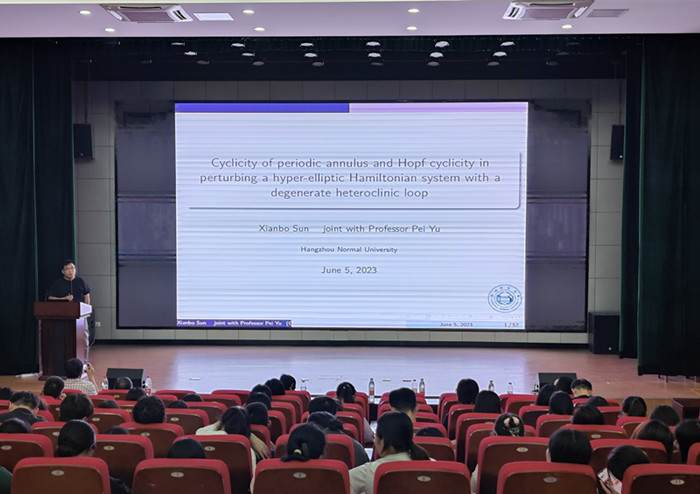 孙宪波教授作了《希尔伯特十六问题的最新进展》的学术报告,首先引入了著名的希尔伯特十六问题,接着给大家介绍了国内外相关问题的前沿工作和一些未解决的数学问题,并用数学软件绘制精美的极限环。孙教授通过经典的数学问题,唤醒学生的好奇心,激发了学生的求知欲。