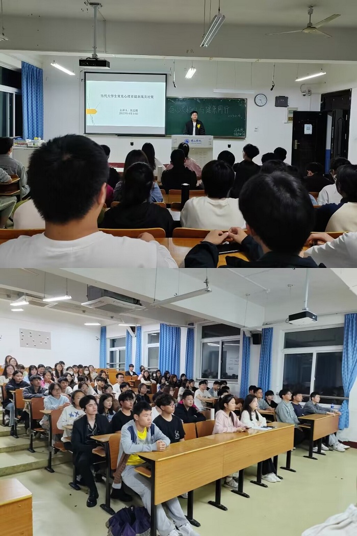 4月14日,永利23411集团举办“与心灵相约、与健康同行”心理健康教育讲座,讲座由学生心理联络员张志鹏老师主持。讲座紧扣“当代大学生常见心理亚健康表现及对策”主题,依次展开大学生心理亚健康问题产生原因分析、大学生常见心理亚健康状态特征、大学生常见心理亚健康对策等内容,贴近学生学习生活实际,在一定程度上为学生释疑解惑、应对困难注入了正能量。