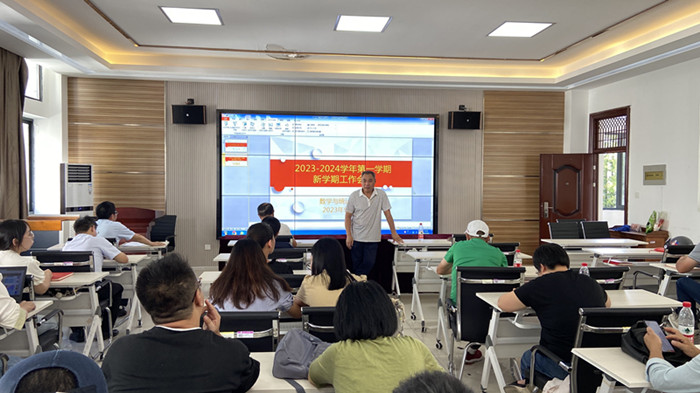 院长汪宏健布置开学前有关准备工作,提出相关要求,他就本学期的重点工作进行了强调,一是要继续高质量完成第五至第八学期教学大纲的修订,要着力加强人才队伍建设,尤其要加大高层次人才引进力度,青年教师要加强科研,提前谋划,积极申报青年基金。