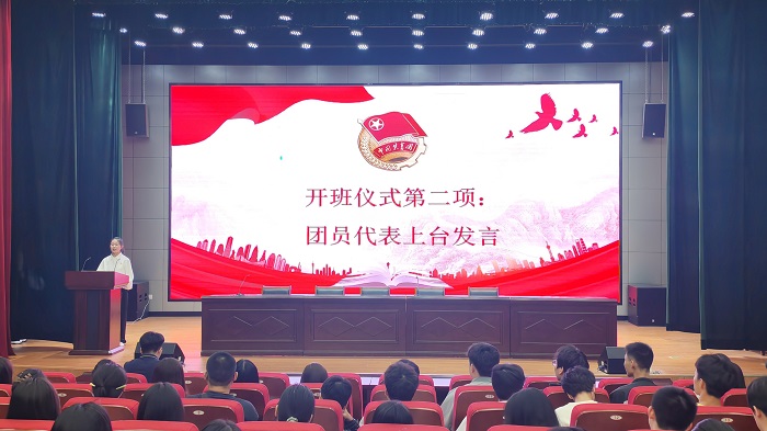 开班仪式在激昂的国歌声中拉开帷幕。学员代表陈菁文上台表态发言,号召所有学员要全面发展,充分发挥优秀团员的先锋模范作用,不断提高自身综合素质,勇于担当时代责任。张姝玥同学宣读了团课学习有关细则与纪律要求,会议还设置了播放中国共产主义青年团团歌《光荣啊,中国共青团》环节。开班仪式现场气氛庄严厚重,有浓厚的“人人争做新时代优秀共青团员”氛围感。会后进行了第一次授课,马克思主义学院专任教师宛洁以“人与自然和谐共生:中国式现代化的本质要求—建设社会主义生态文明”为主题,站在切近学生生活实际与思想认知水平的角度,生动诠释了坚持生态兴则文明兴、坚持良好生态环境是最普惠的民生福祉、坚持绿色发展是发展观的深刻革命。让在座的同学们更深刻的领悟到习近平新时代中国特色社会主义思想的重要组成部分—习近平生态文明思想科学内涵,纷纷表示将会坚持把建设美丽中国转化为个体自觉行动,以主人翁的姿态共谋生态文明建设之路。