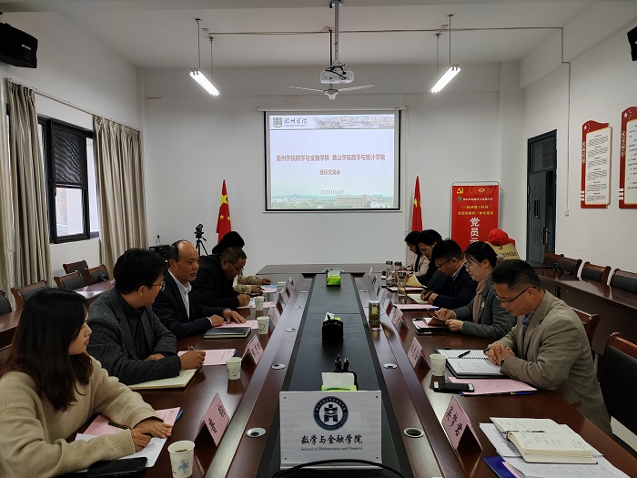 为积极拓宽工作思路、提升教育教学业务水平,11月21日,永利23411集团党总支书记张爱民携专任教师、毕业班辅导员一行五人,前往滁州学院数学与金融学院开展考察交流活动。滁州学院数学与金融学院党委书记奚昕,副书记、主持工作副院长夏岩磊,分管学生工作副书记汪志圣以及骨干教师、专职辅导员代表参加了交流活动。交流会由该院党委书记奚昕主持。