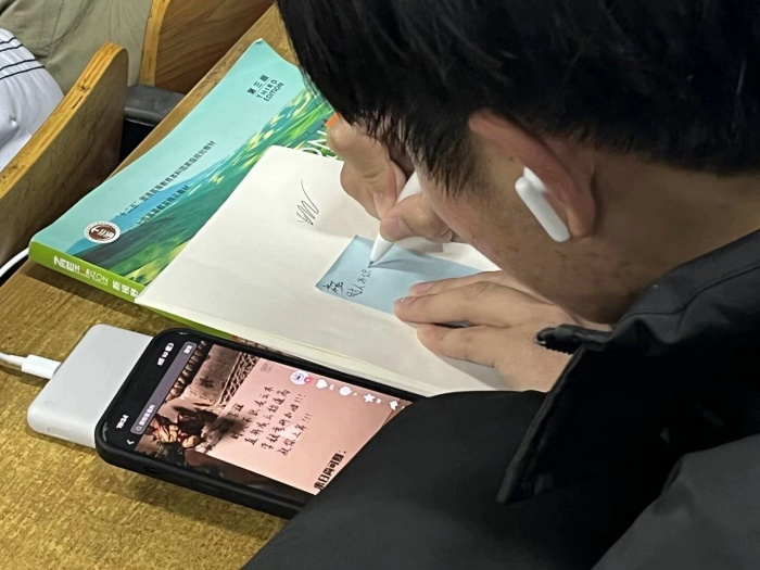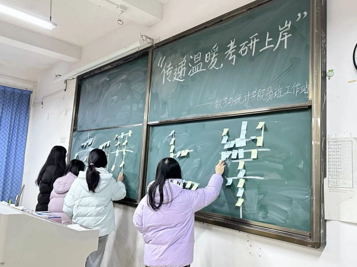 写好便利贴后,大家将手中的便利贴贴到教室前方黑板上,拼接成“考研上岸”的字样。参加此次活动的杨阳同学说:“为考研学长学姐送祝福活动,我也深受感染深刻体会到了温暖与鼓励。在考研冲刺阶段,我们用祝福传递着信心与勇气,更衷心祝愿所有学长学姐抖擞精神一‘研’上岸!”
