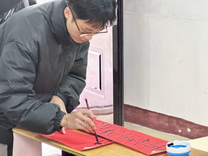 气氛热烈、翰墨飘香的活动现场,吸引了不少同学的关注和参与。“春临大地百花艳,节至人间万象新”。一副副寓意深远的春联,新年红、中国红,照亮现场同学们喜庆洋洋的红脸蛋,千万道炫目的红此刻在校园汇聚,处处洋溢着喜庆的节日氛围,共贺火热中国年。