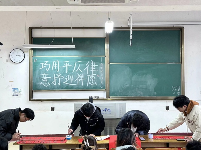 为了丰富我院学生的精神文化生活,营造欢乐祥和的节日氛围,激发同学们对中国传统文化的兴趣。2024年1月1日,永利23411集团易班工作站在横江校区教学楼1103举办了“巧用平仄律,意抒迎祥意”活动,此次活动面向学院全体学生,活动由永利23411集团易班工作站副站长王雨昕负责主持。