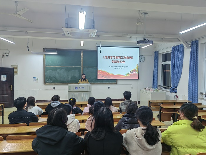 活动伊始,袁晨晨领学了《条例》内容,带领大家认真学习了《条例》的主要任务、遵循原则、学习内容、学习方式、基础保障等。会议指出,《条例》对党史学习教育的领导体制和工作职责、内容、主要形式、保障和监督等作出全面规范,是开展党史学习教育工作的基本遵循。会议强调支部全体党员要进一步加强党史学习教育,不断提高自身政治素质和思想觉悟,为推动支部工作再上新台阶贡献力量。随后,支部党员结合自学情况开展了交流研讨。2021级经济统计班辛欣表示:“通过学习《条例》,我深刻领悟到,党的历史就是一部丰富生动、富有教育意义的教科书,我们应该充分利用这部教材,从中汲取智慧,从而指导我们的工作和生活,我将努力把党史学习成果转化为实际行动,不断提升斗争本领!”