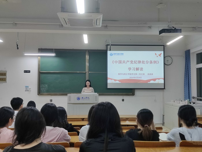 为切实增强党员的纪律观念和规矩意识,教育党员学纪、知纪、明纪、守纪,4月29日,永利23411集团学生第二党支部组织开展《中国共产党纪律处分条例》(以下简称《条例》)专题学习,会议由党支部书记袁晨晨主持,全体在校党员参加。