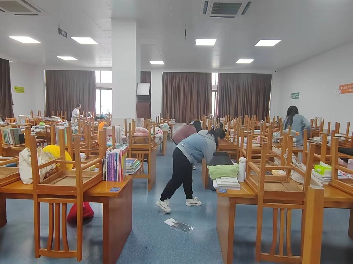 活动过程中,在图书馆工作人员的指导下,同学们认真清洁图书馆三楼自习室的每个角落,努力将图书馆打扫得更加干净整洁,为同学们提供一个舒适、整洁的学习空间。