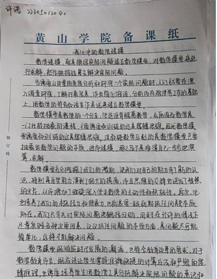 数学建模协会会长唐慧娴同学在到梦空间上发布活动,并且建立群聊帮助参与人员回答活动相关事宜,为活动顺利开展奠定基础。活动时,同学们准时到达,在现场写下400字左右的作文,来表达自己对数学建模的理解。本次活动共收到征文20多篇。数学建模协会将对征集到的习作进行评比并表彰。