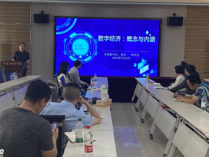 李庆宏校长做了《数字经济:概念与内涵》学术报告,介绍了传统产业的数字经济与新兴的智能化经济形态的区别与联系,勉励大家在数字经济背景下要转变思想,抓住新的机遇和挑战。最后李校长对创新中心2024年活动计划进行了再强调,强调各团队要经常开展汇报交流,力争高质量、多数量的成果产出。