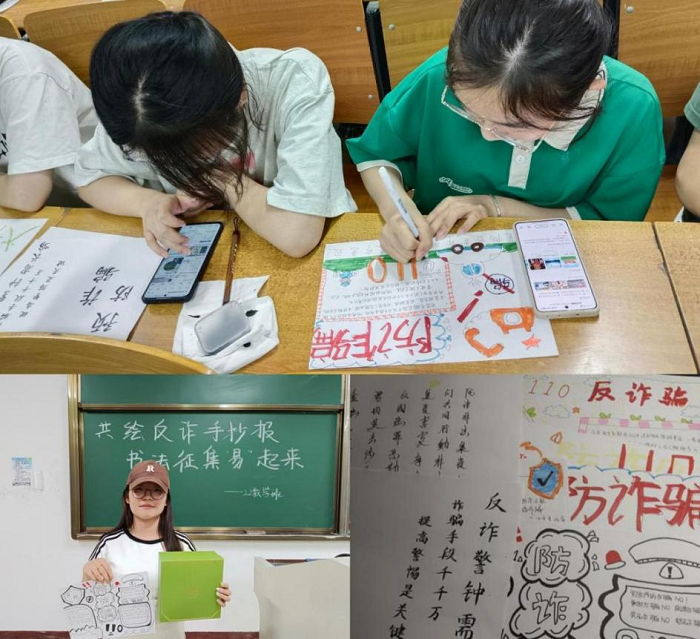 5月8日在横江校区教学楼1501教室举办“共绘反诈手抄报,书法征集“易”起来”手抄报设计主题活动,活动由2022级数学与应用数学班主办,参与活动的同学将反诈骗的决心融入到一张小小的手抄报中,活动过程积极认真,用一张张A4纸让反诈骗意识融入到学生心中,书法作品笔画流畅,结构匀称,整体美观,手抄报作品主题鲜明,字迹清晰,图文并茂。
