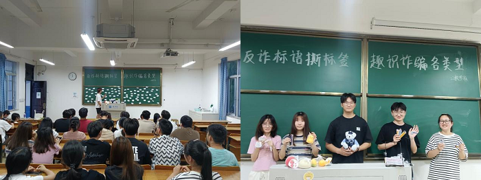 指导老师鲁韵和项目负责人一致认为提高大学生的防诈骗意识需要我们多去知晓一些骗局的手段,这样有助于更快速地去识别骗局。6月4日,该班将大学校园中最常见几种诈骗类型以及对应类型的反诈方法为一组标语,在教学楼1504教室举办“反诈标语撕标签,趣识诈骗各类型”活动,同学们认真辨别诈骗类型,积极投身“无诈校园”的创建中。本次活动引导学生从思想上筑牢讲诚信、防诈骗的安全防线,并为最先识别、收集完整一组标语的同学颁发奖项。