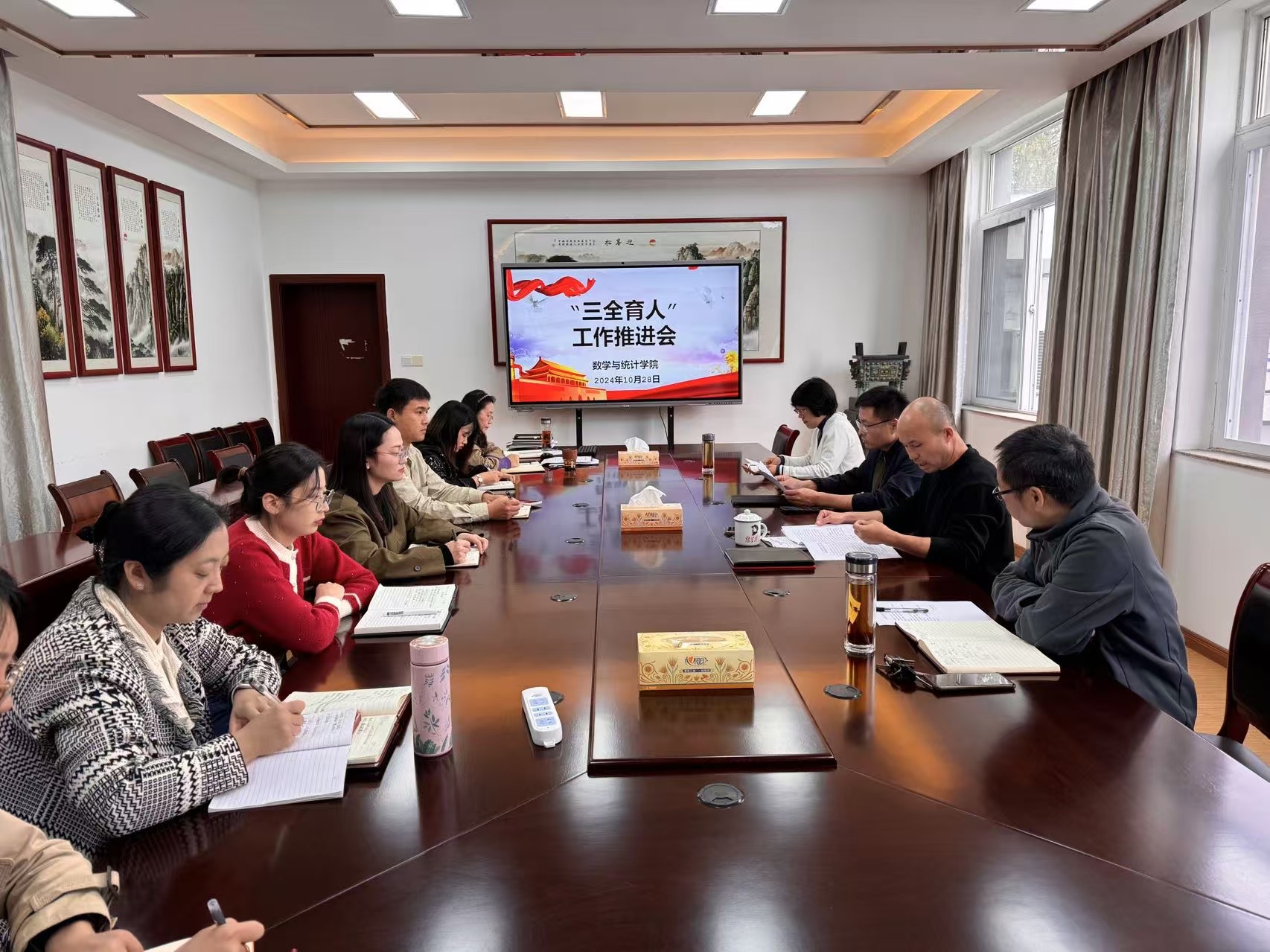 与会人员就如何推进“三全育人”工作交流发言。会议强调,一是持续推动学院“三全育人”建设工作,强化学院“全员育人”工作力度,补足学院“三全育人”工作短板;二是培育打造特色项目,着重推进学院大学生建模竞赛、大学生数学竞赛、党员教师志愿答疑、“满天星”辅导站等优势项目,进行特色挖掘;三是要全员发力,自加压力,做出成效,把“三全育人”工作落到实处,为党育人,为国育才,交出一份满意的答卷;四是要做到构建思政教育“大协同”,做到育人机制“全贯通”和做到育人要素“强融合”。