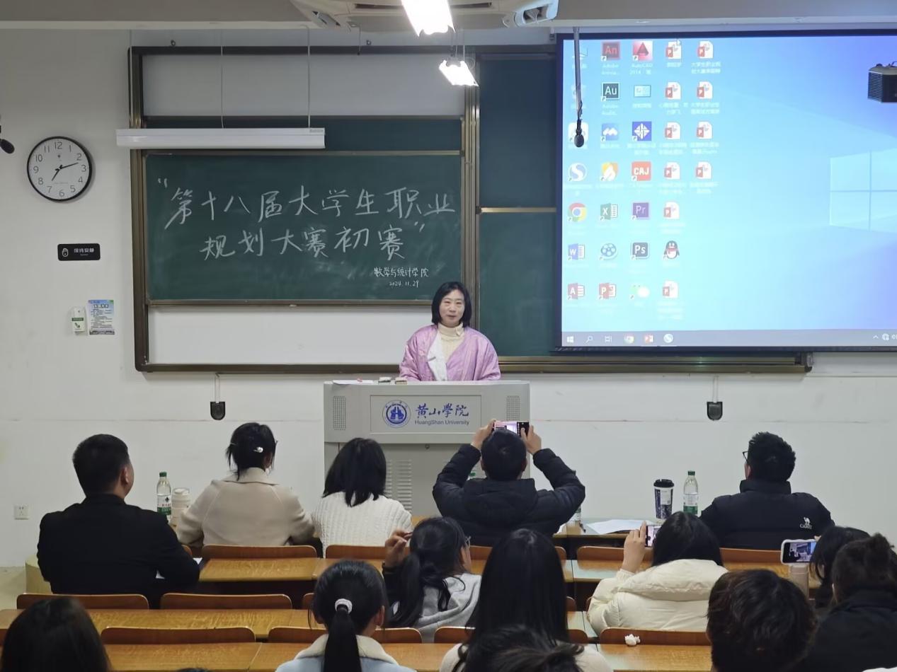 为促进大学生对自身职业方向的认知和规划,提高他们的职业技能和就业竞争力,11月29日晚18点,永利23411集团于1302教室举办第十八届大学生职业规划大赛初赛。学院共有10支队伍参加了比赛,党总支副书记方炜、教育学博士孙露教授、陈沫老师、任小华老师以及21数学2班戚远明担任评委。