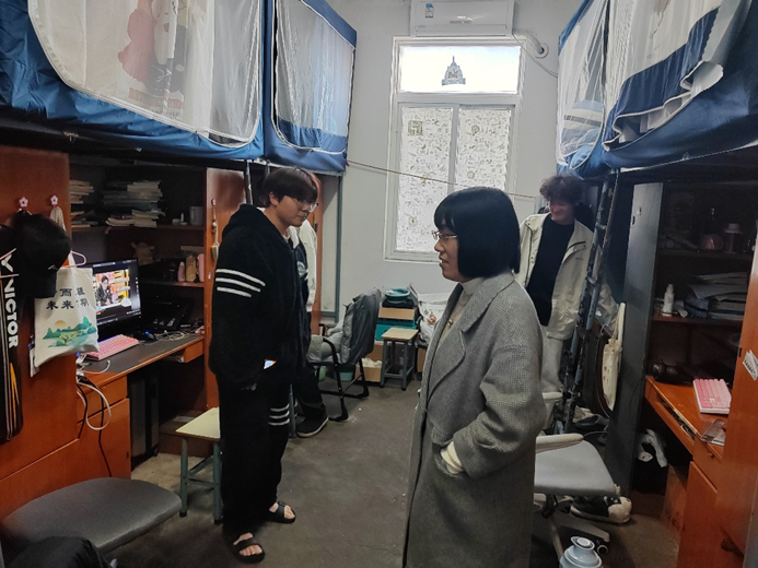 据悉,此次宿舍走访活动也是学院学风建设月系列活动之一,既提升了学生的安全意识,也促进了师生间的交流、切实加强了学风建设。