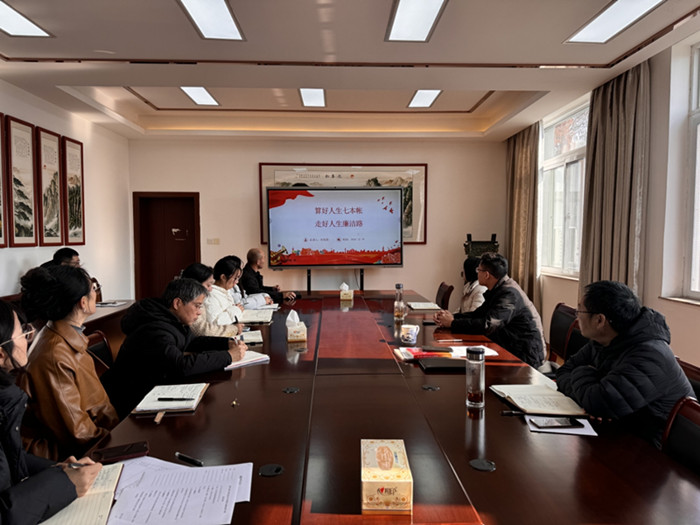 刘双四紧扣主题,引用历史典故,以“政治、经济、名誉、家庭、亲情、自由、健康”七笔人生关键账为核心脉络,深入剖析正反面典型案例,紧密联系学院教学科研、管理服务工作实际,引导党员干部知荣辱、明得失、辨是非,深刻认识廉洁从业、廉洁修身的重要意义。