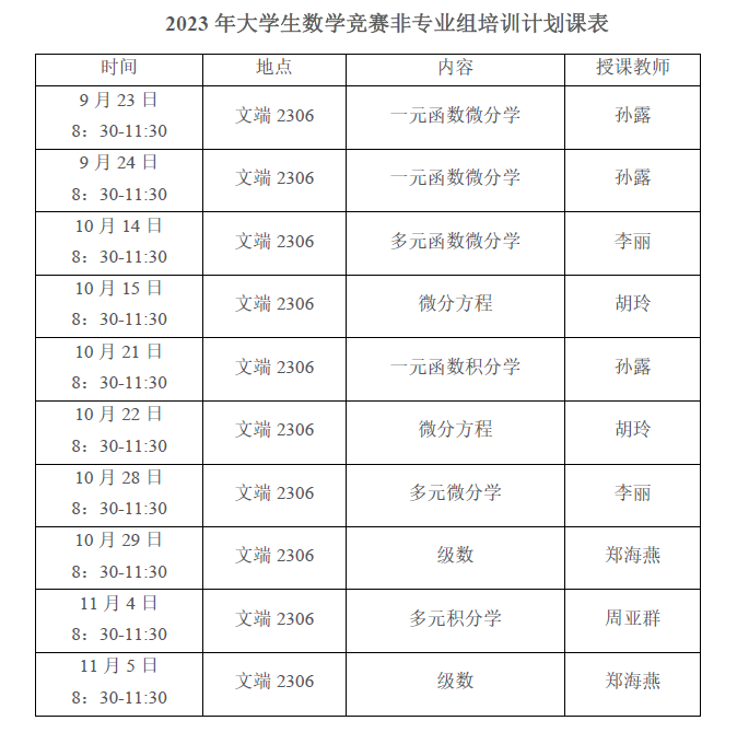 为了激发我校学生学习数学的积极性,培养学生的创新思维,提高学生应用数学知识解决数学问题的能力,推动大学数学教学体系、教学内容和方法的改革,同时配合2023年全国第十五届大学生数学竞赛,永利23411集团决定举办数学竞赛培训班为全校学生进行免费培训。