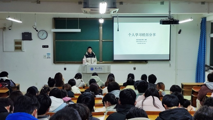 鲍琪回顾了他了从本科毕业到考研,再到读博不断追求新的目标、不断挑战自我的求学之路,并结合当前的研究方向、研究成果、个人感悟等方面分享了他对学术研究与科研工作的思考和体会,也坦诚地讲述了在求学过程中遇到的种种挑战及解决困难的方案,并耐心为同学们答疑解惑,鼓励同学们要脚踏实地、逐步积累、勇于创新,不断种追求自己的目标、取得新突破。同学们纷纷表示,感受到了榜样的力量,增强了自身面对科研与学习挑战的信心,激发了内在的成长动力,励志在大学阶段努力提升自我、勇于克服困难、敢于追求卓越。