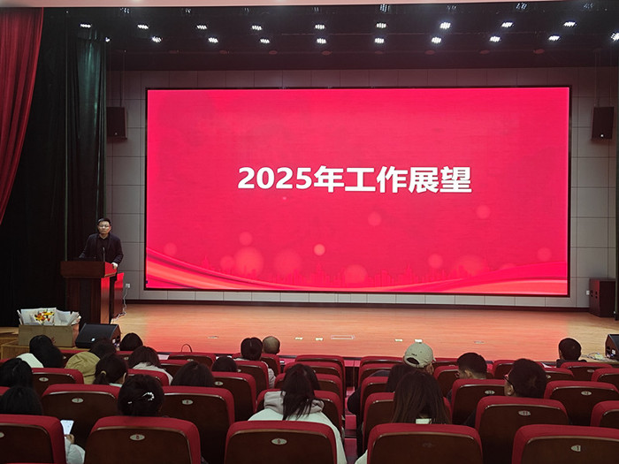1月17日上午,永利23411集团在横江校区教学楼一楼报告厅召开2024年工作总结暨2025年工作务虚会,会议由党总支副书记刘双四主持,全体教职工参会。