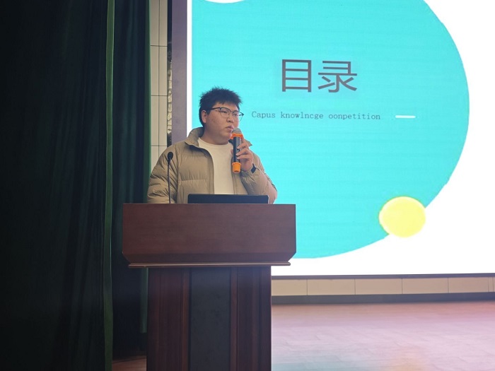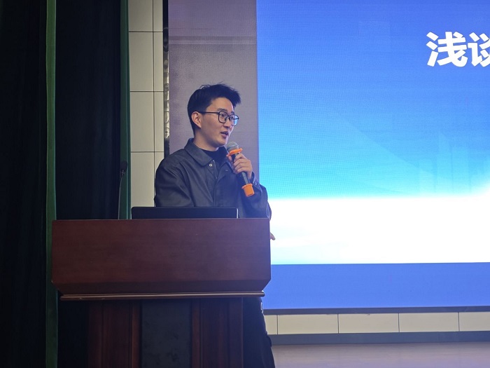 黄浩则是全面介绍了大学生各类竞赛的时间、赛制等要点,他从技术角度出发,分享了创新思维在项目设计中的应用,并介绍了如何优化项目方案以提高竞争力。